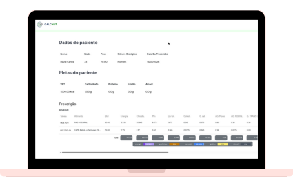 A Plataforma Calcnut é um projeto desenvolvido pela Pencillabs em parceria com o departamento de Nutrição da Universidade de Brasília. O objetivo é permitir que profissionais da saúde e estudantes da graduação realizem avaliações e prescrições nutricionais de forma eficiente e em conformidade com bases públicas de alimentos como a POF (Pesquisa de Orçamentos Familiares) e TACO (Tabela Brasileira de Composição de Alimentos).